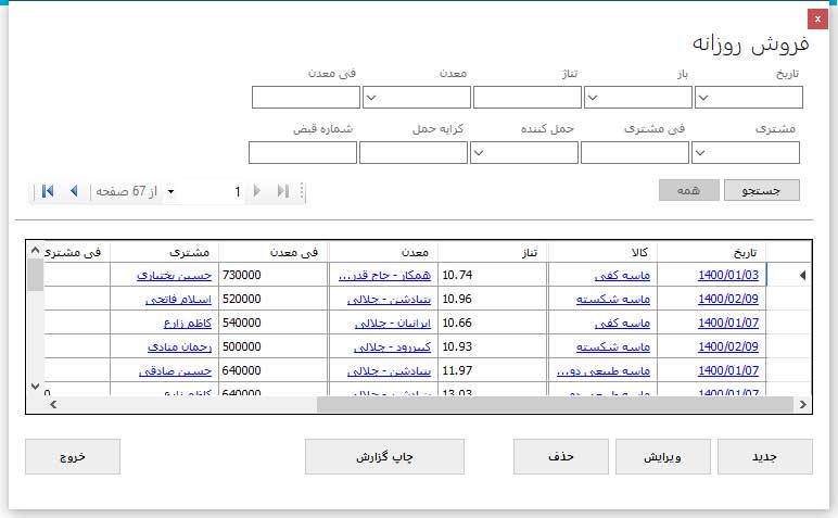 سیستم یکپارچه ثبت اطلاعات فروش به همراه اتوماسیون حساب مشتری و معدن و حمل کننده، همچنین سیستم ارسال پیامک داخلی و گزارشات متنوع در دسته فروش و حسابداری، مجموعه ابزار تکمیلی را برای راحتی خیال و سهولت جوابگویی به طرفین معامله و حسابرسی را گرد هم آورده است